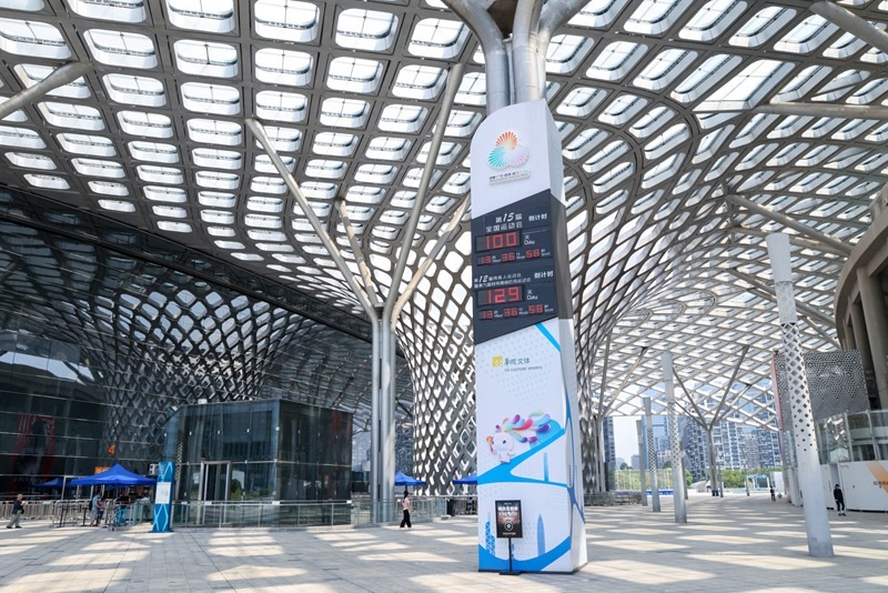 這是8月1日在深圳灣體育中心拍攝的第十五屆全國(guó)運(yùn)動(dòng)會(huì)倒計(jì)時(shí)牌。