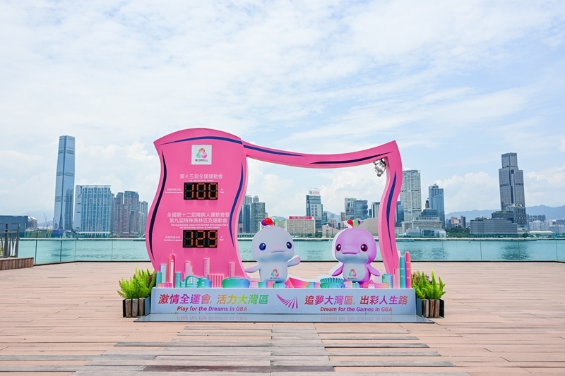 這是8月1日拍攝的香港維港沿岸的第十五屆全國(guó)運(yùn)動(dòng)會(huì)倒計(jì)時(shí)牌。