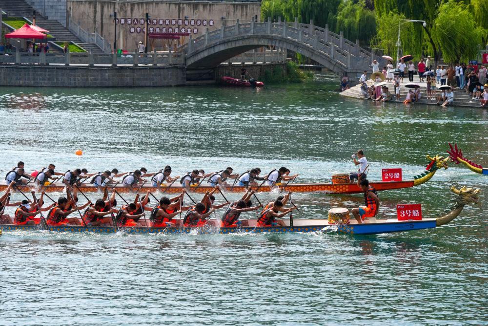 龍舟在本次世運(yùn)會上首次成為正式比賽項(xiàng)目,這也符合世運(yùn)會設(shè)項(xiàng)突出地域特色的特點(diǎn)。圖為貴州省黔東南苗族侗族自治州鎮(zhèn)遠(yuǎn)縣?陽河上的龍舟比賽。新華社發(fā)(龍建睿攝)