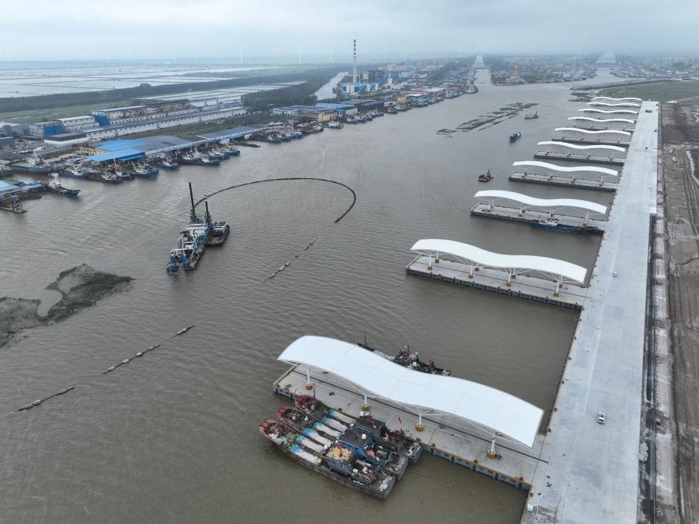 江蘇鹽城黃沙港國家中心漁港二期工程于2024年9月建成試運營,包含2022.42米順岸碼頭、16座突堤碼頭及配套設(shè)施,是國內(nèi)首座全自動化漁業(yè)碼頭,配備智能卸貨系統(tǒng)、水產(chǎn)品交易區(qū)、冷凍倉儲等設(shè)施。