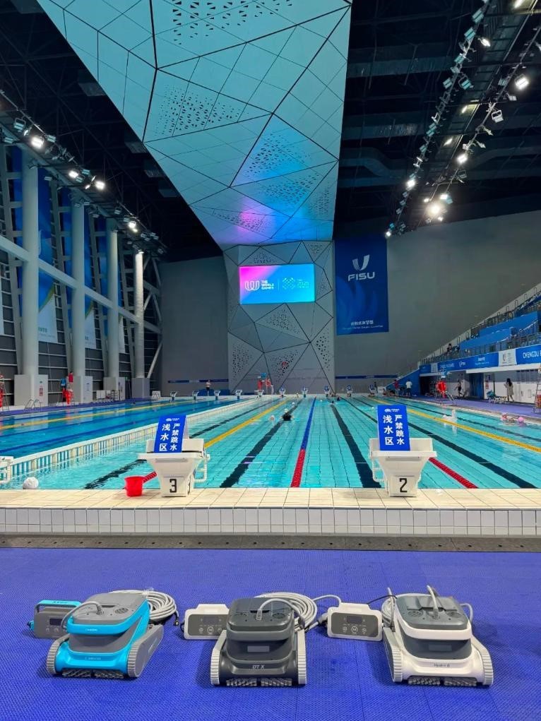 13日,世運(yùn)會(huì)皮艇球項(xiàng)目在簡陽文體中心游泳館開賽,與運(yùn)動(dòng)員們一同出現(xiàn)在泳池里的還有幾位特殊的“清潔工”。據(jù)場館工作人員介紹,賽事期間場館投入了泳池清潔機(jī)器人設(shè)備,完成對(duì)泳池的日常維護(hù)及清潔任務(wù)。