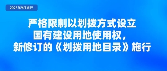 新修訂的《劃撥用地目錄》自2025年9月1日起施行。新修訂《目錄》明確,嚴(yán)格限制以劃撥方式設(shè)立國有建設(shè)用地使用權(quán)。符合本《目錄》,確需以劃撥方式使用土地的,由建設(shè)單位提出申請,經(jīng)有批準(zhǔn)權(quán)的人民政府批準(zhǔn),方可以劃撥方式提供;建設(shè)單位提出或者同意以有償方式使用土地的,應(yīng)當(dāng)依法采取出讓、租賃等方式提供。