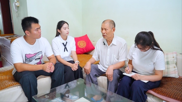 褚慶華向?qū)ぴL團講述祖父褚雅青