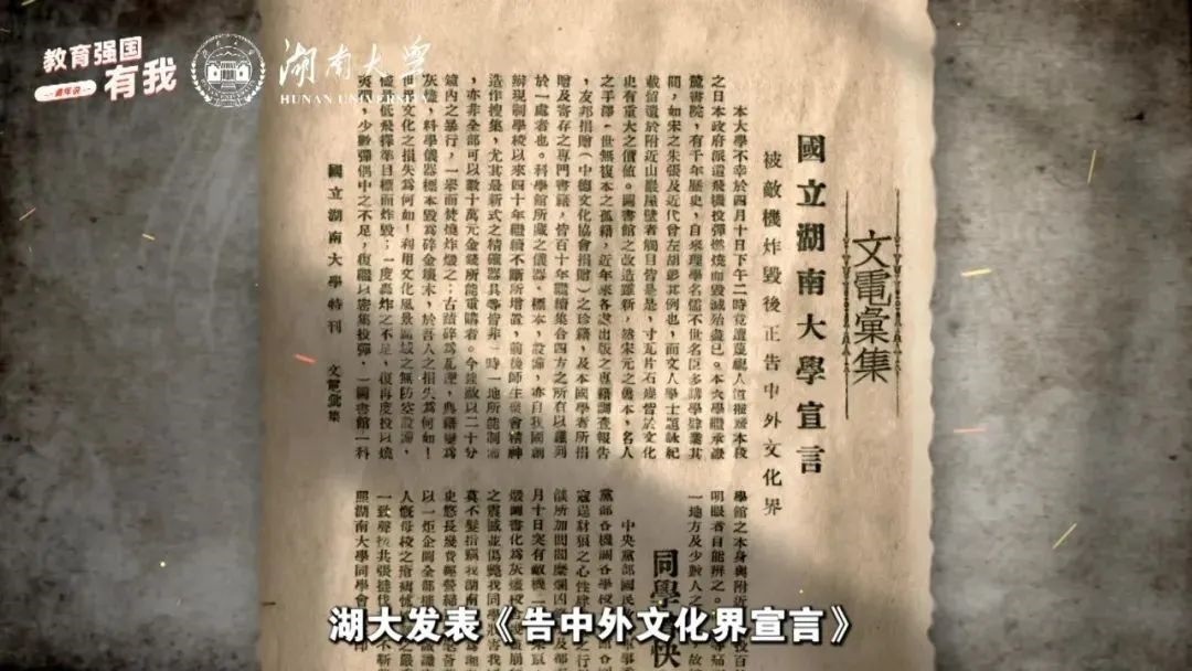習(xí)近平總書(shū)記強(qiáng)調(diào),廣大青少年生逢其時(shí),要賡續(xù)紅色血脈,樹(shù)立強(qiáng)國(guó)有我的遠(yuǎn)大志向,做堂堂正正、光榮自豪的中國(guó)人,勇?lián)褡鍙?fù)興的時(shí)代大任。2025年是中國(guó)人民抗日戰(zhàn)爭(zhēng)暨世界反法西斯戰(zhàn)爭(zhēng)勝利80周年,教育部政務(wù)新媒體推出“教育強(qiáng)國(guó),有我!”網(wǎng)絡(luò)主題宣傳活動(dòng)之“青年說(shuō)·傳承篇”系列,挖掘高校里的紅色記憶,展現(xiàn)青年師生的時(shí)代擔(dān)當(dāng)。今天,跟教育小微通過(guò)1個(gè)微視頻和1個(gè)故事,共同回顧湖南大學(xué)師生英勇抗戰(zhàn)的烽火歲月——