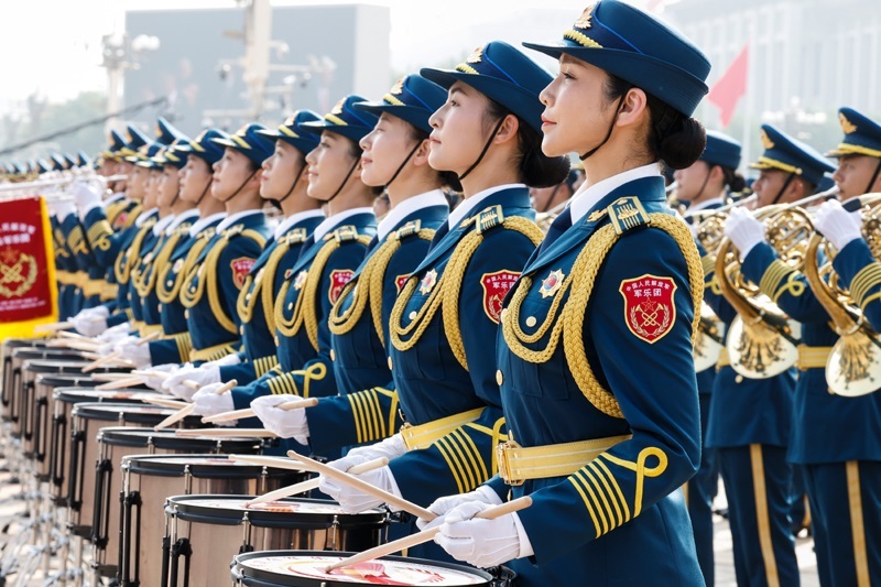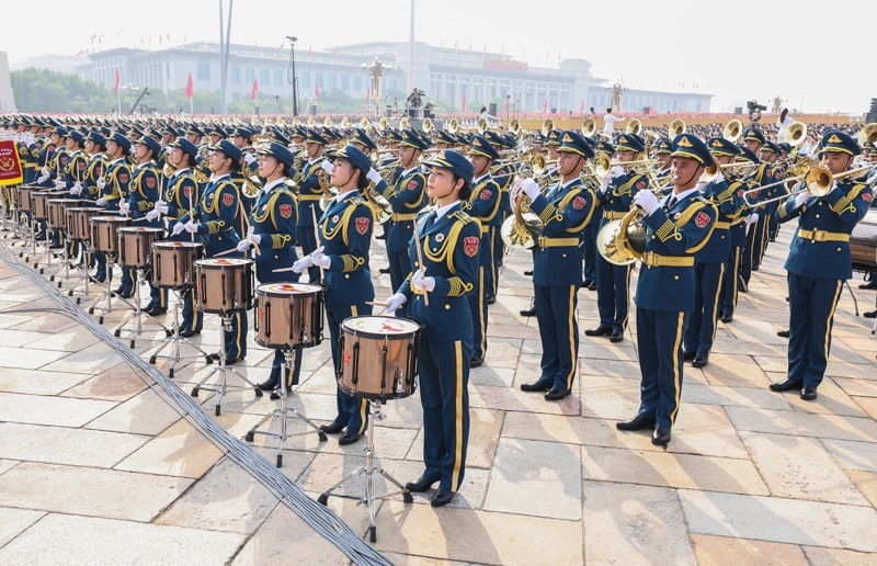9月3日,紀(jì)念中國(guó)人民抗日戰(zhàn)爭(zhēng)暨世界反法西斯戰(zhàn)爭(zhēng)勝利80周年大會(huì)在北京天安門(mén)廣場(chǎng)隆重舉行。這是中國(guó)人民解放軍聯(lián)合軍樂(lè)團(tuán)在演奏。