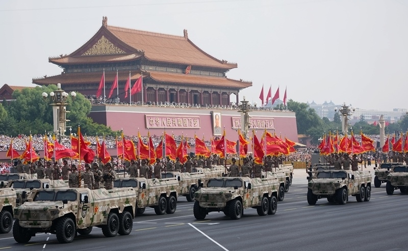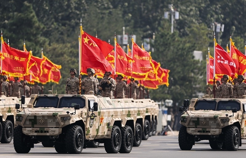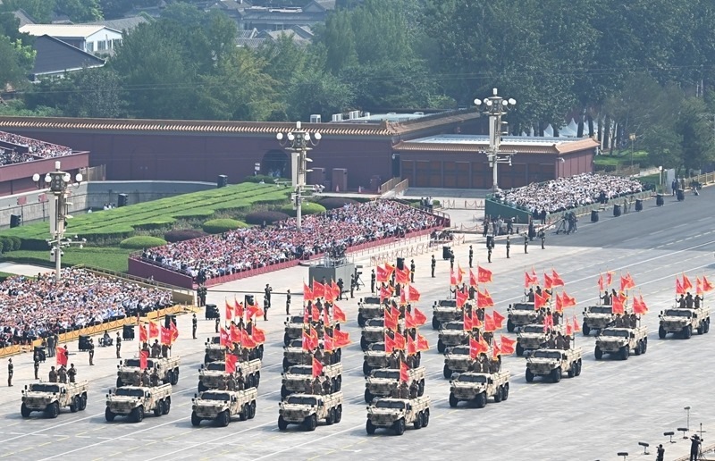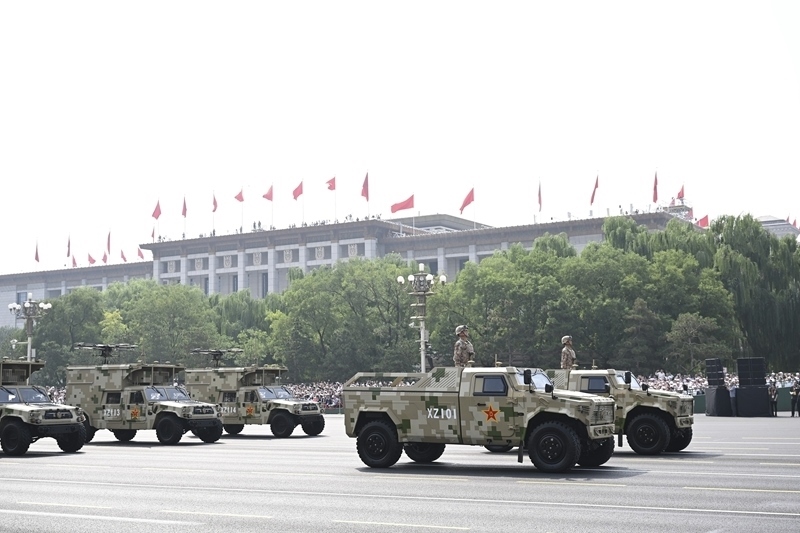 9月3日,紀(jì)念中國(guó)人民抗日戰(zhàn)爭(zhēng)暨世界反法西斯戰(zhàn)爭(zhēng)勝利80周年大會(huì)在北京隆重舉行。這是信息支援方隊(duì)接受檢閱。