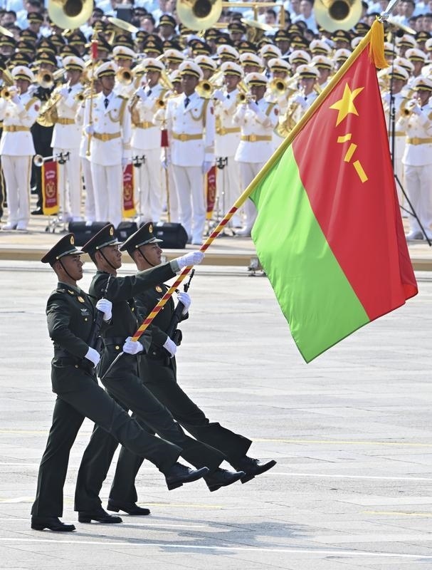 9月3日,紀(jì)念中國(guó)人民抗日戰(zhàn)爭(zhēng)暨世界反法西斯戰(zhàn)爭(zhēng)勝利80周年大會(huì)在北京隆重舉行。這是戰(zhàn)旗方隊(duì)接受檢閱。
