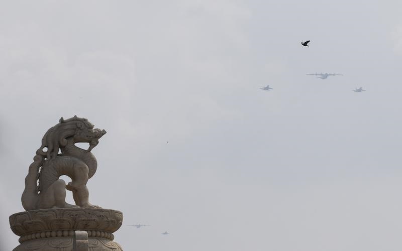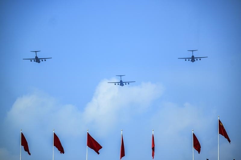 9月3日,紀(jì)念中國(guó)人民抗日戰(zhàn)爭(zhēng)暨世界反法西斯戰(zhàn)爭(zhēng)勝利80周年大會(huì)在北京隆重舉行。這是運(yùn)輸機(jī)梯隊(duì)接受檢閱。