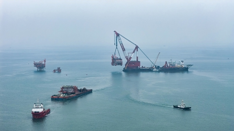 9月8日,隨著重達(dá)4700噸的油氣平臺(tái)上部組塊在渤海南部海域精準(zhǔn)就位,墾利6-1油田10-1北區(qū)塊Ⅱ期開(kāi)發(fā)項(xiàng)目建設(shè)工作取得重要進(jìn)展,渤海億噸級(jí)油田又一油氣平臺(tái)完成海上安裝。