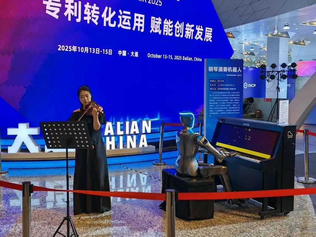 走進(jìn)一樓的展示大廳,一段優(yōu)美的音樂旋律緩緩流入耳中,一臺(tái)人形機(jī)器人指尖輕快地在鋼琴鍵盤上飛舞,和一名小提琴演奏家共同奏響《我和我的祖國(guó)》,引來許多與會(huì)嘉賓駐足聆聽。