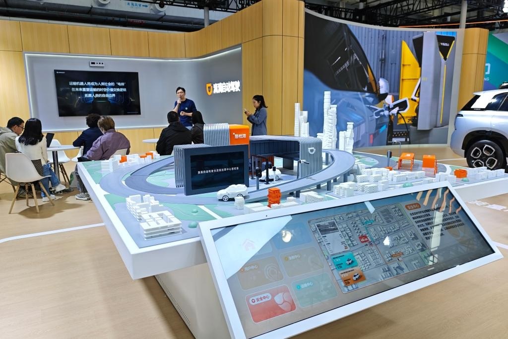 在滴滴自動駕駛展臺,智能沙盤展示全無人Robotaxi運(yùn)營場景。新華社記者 唐詩凝 攝