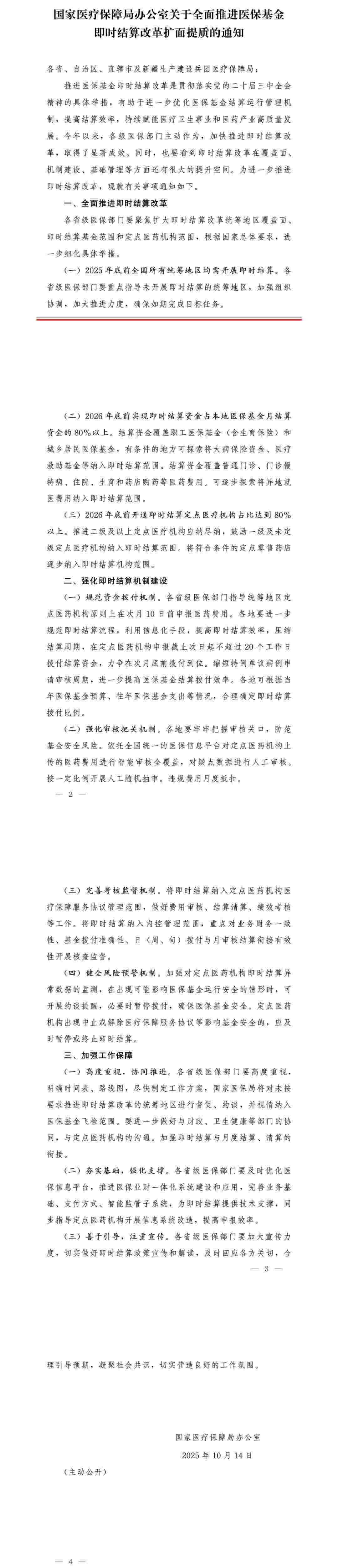 據(jù)國家醫(yī)保局官方微信消息,國家醫(yī)療保障局辦公室發(fā)布《關(guān)于全面推進(jìn)醫(yī)?;鸺磿r(shí)結(jié)算改革擴(kuò)面提質(zhì)的通知》。全文如下: