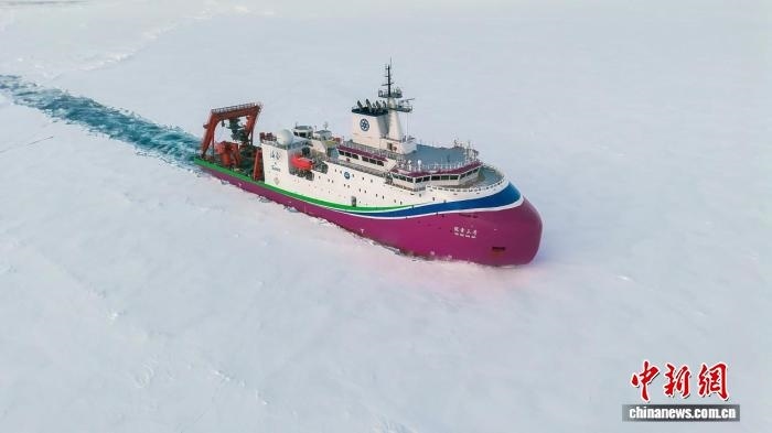 圖為2025年9月,“探索三號(hào)”在北極密集冰區(qū)破冰航行。(中國(guó)科學(xué)院深??茖W(xué)與工程研究所 供圖)