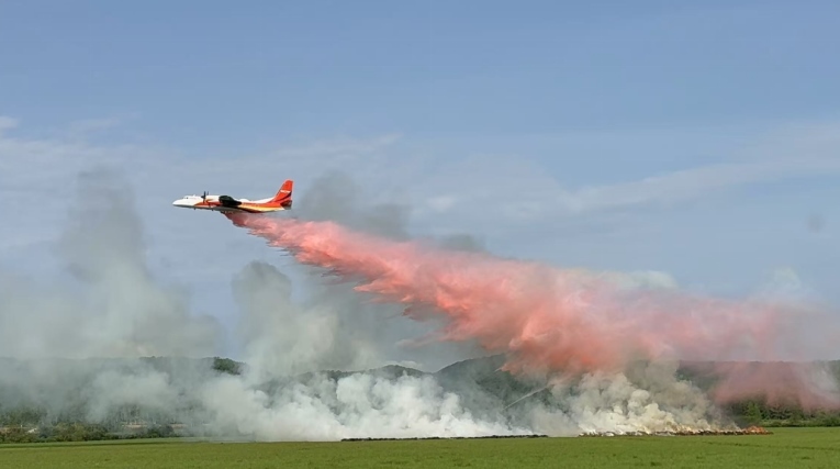 我國經(jīng)過三年自主攻關(guān)研制出的新舟60滅火飛機(jī)滅火實(shí)戰(zhàn)場景。新舟60滅火飛機(jī)最大載水量6噸,滿載作業(yè)半徑600公里,填補(bǔ)了森林草原滅火大飛機(jī)的空白和短板。應(yīng)急管理部供圖