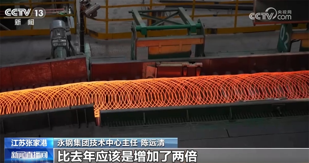 永鋼集團(tuán)技術(shù)中心主任陳遠(yuǎn)清稱:“今年下半年我們的產(chǎn)量銷量實(shí)現(xiàn)了翻番,比以前翻了一倍。隨著我們研發(fā)技術(shù)的突破,我們總產(chǎn)銷量也是翻了兩番,比去年增加了兩倍?!?/p>