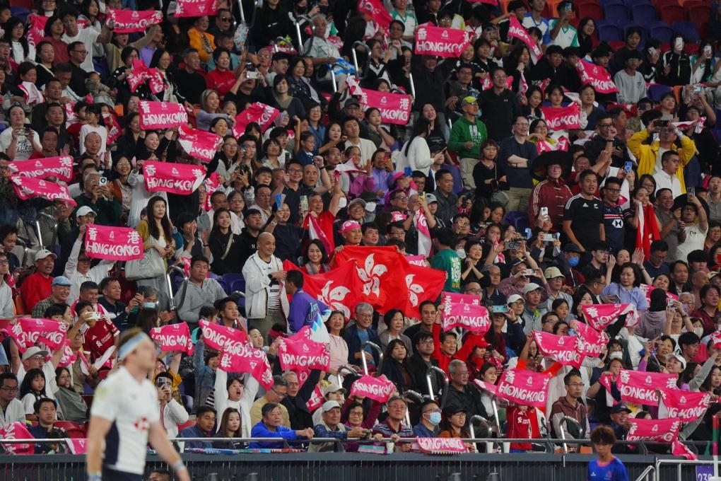 香港市民葉先生特意購(gòu)票來(lái)到啟德觀看14日晚間的七人制橄欖球比賽,為闖入決賽的香港男隊(duì)加油?!斑@次的橄欖球比賽在香港舉辦,我當(dāng)然要來(lái)看!”他的語(yǔ)氣中難掩激動(dòng),“在主場(chǎng)看到他們奪冠真的太開(kāi)心了!”
