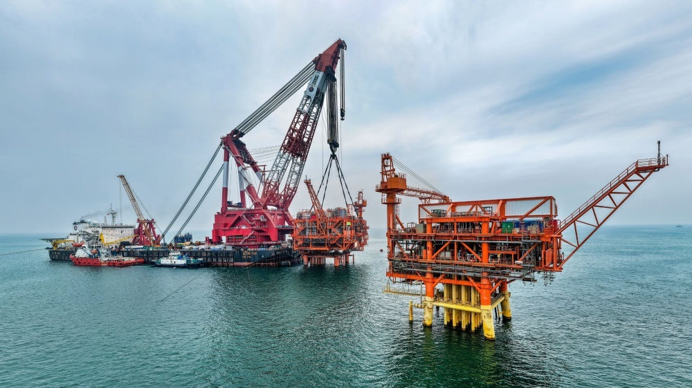 9月8日,墾利6-1油田10-1北區(qū)塊Ⅱ期開發(fā)項(xiàng)目油氣平臺(tái)在渤海海域完成海上安裝(無人機(jī)照片)。新華社發(fā)(杜鵬輝 攝)