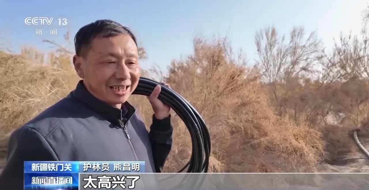 眼下這個季節(jié),正是冬季巡林最忙碌的時候,新疆鐵門關市營盤鎮(zhèn)53歲的護林員熊昌明,每天早晨都會和同事在泵房會合,一起去檢修梭梭林里的滴灌帶。