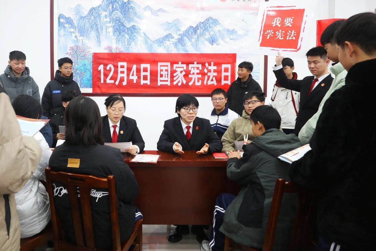 12月3日,山東省棗莊市市中區(qū)人民法院組織法官走進校園,開展主題宣傳活動,向?qū)W生普及憲法知識、宣傳法治觀念、弘揚憲法精神。(工人日報通訊員 孫中喆 攝)