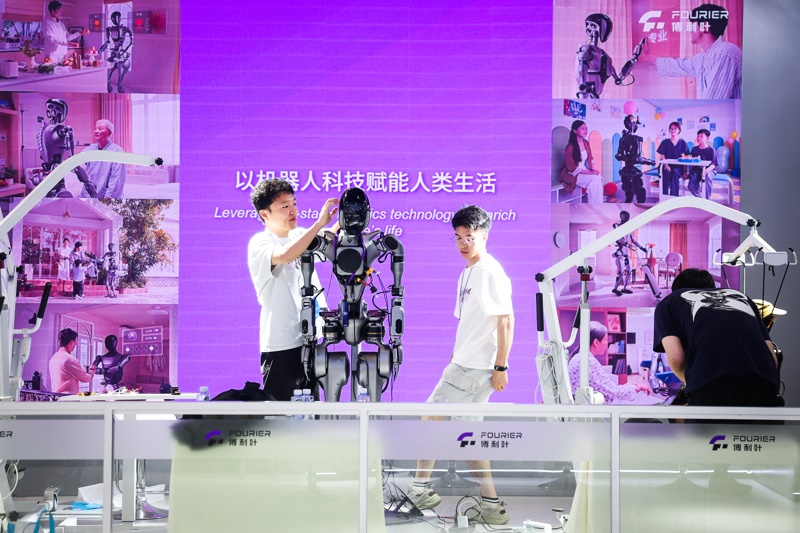 2025世界人工智能大會上,傅利葉工程師調(diào)試人形機(jī)器人。解放日報記者 海沙爾 攝