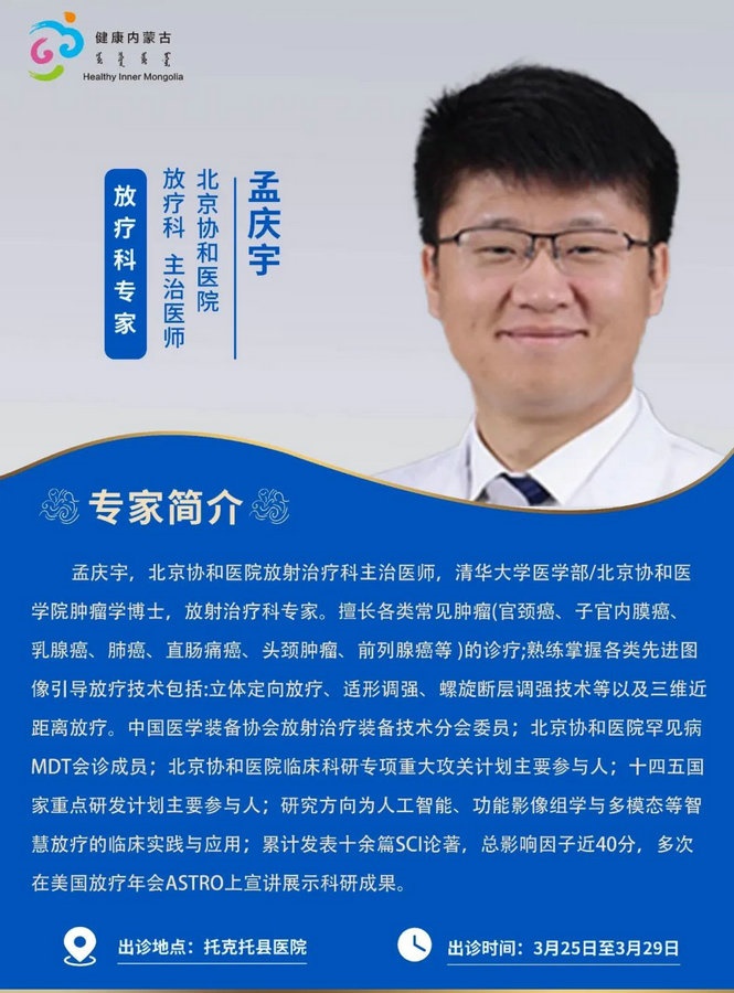 京蒙協(xié)作 政協(xié)助力。每周有北京相關(guān)協(xié)作醫(yī)院專家來呼和浩特出診,現(xiàn)將本周專家出診信息予以發(fā)布。