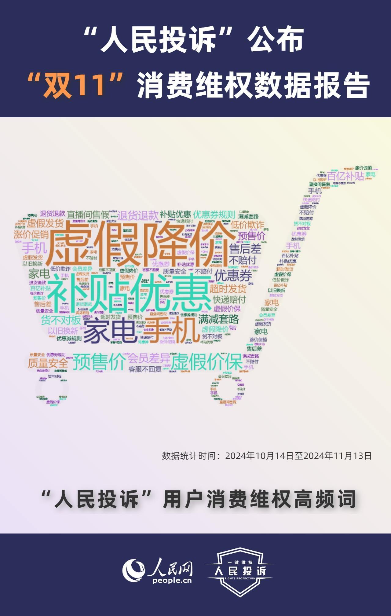 那么,今年你的“雙11”購物還遇到了哪些“套路”?據(jù)人民網(wǎng)“人民投訴”平臺(tái)統(tǒng)計(jì),“雙11”期間平臺(tái)共收到17699條(數(shù)據(jù)統(tǒng)計(jì)從2024年10月14日-11月13日)投訴信息。其中,手機(jī)、家電、智能產(chǎn)品、美妝服飾等消費(fèi)領(lǐng)域維權(quán)量大;平臺(tái)“國補(bǔ)”“以舊換新”等優(yōu)惠規(guī)則不透明,保價(jià)服務(wù)藏“貓膩”,直播間虛假“破價(jià)”,“百億補(bǔ)貼”商品貨不對(duì)板,“高價(jià)預(yù)售”欺詐等問題反映突出。