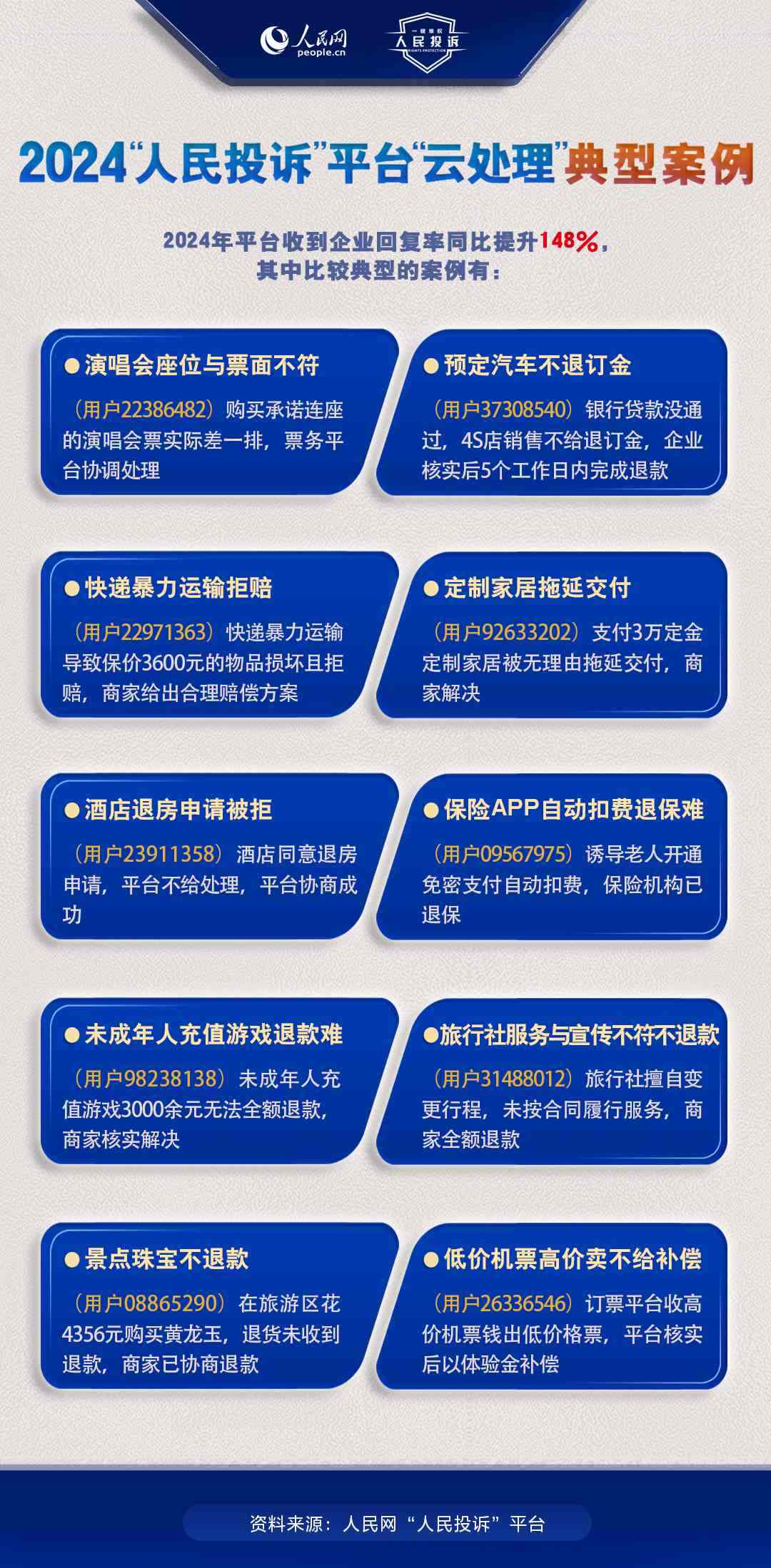 一年來,包含上述典型案例的各消費(fèi)領(lǐng)域投訴通過“人民投訴”平臺得到了有效解決,消費(fèi)者實(shí)現(xiàn)了高效、高質(zhì)量維權(quán)。