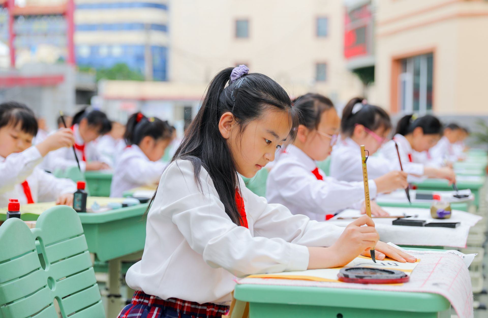 6月13日,呼和浩特市玉泉區(qū)恒昌店巷小學(xué)的學(xué)生們正在參加書法比賽。當(dāng)日,該?!靶@書法文化節(jié)”漢字書寫大賽開賽,200多名學(xué)生在硬筆和軟筆項(xiàng)目上展開比拼。活動(dòng)旨在提高孩子們漢字書寫水平,弘揚(yáng)中華民族優(yōu)秀傳統(tǒng)文化。