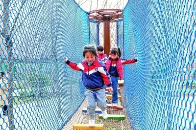 河南安陽,幼兒園小朋友在西裴村兒童游樂場玩耍。新華社發(fā)