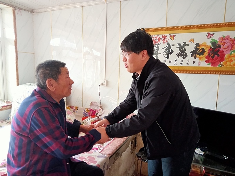 圖為駐村第一書記王寒到五保戶家中發(fā)放合作社收益資金醫(yī)療保險(xiǎn)補(bǔ)貼。校方供圖