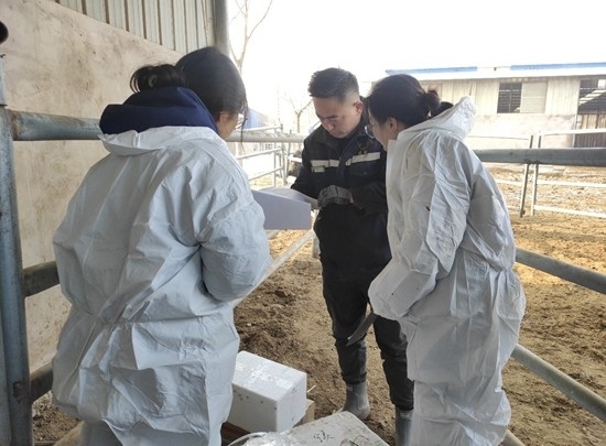 2月21日,科技小院專項(xiàng)研究生閔勝男給養(yǎng)殖場的肉牛采血。圖片由受訪者提供