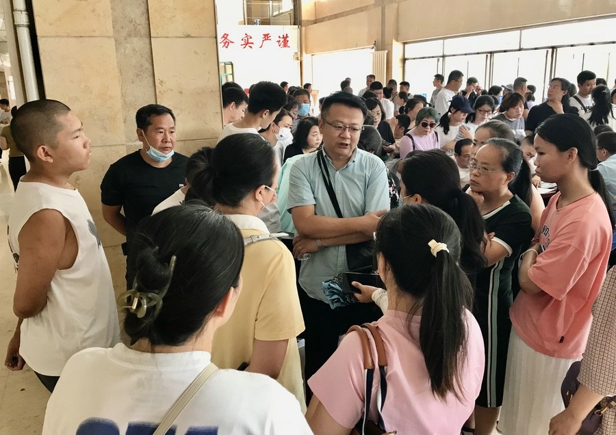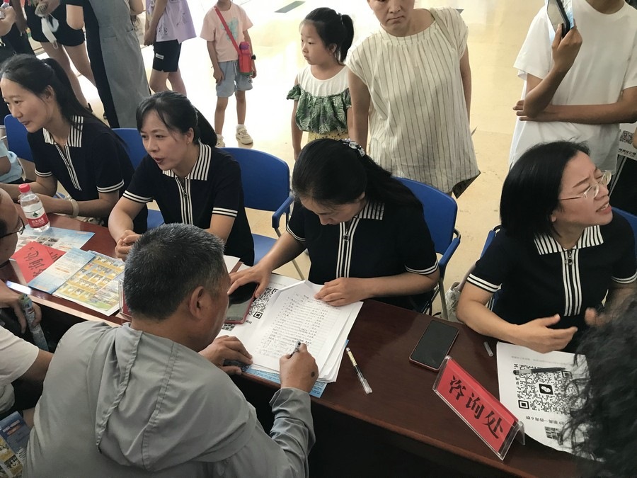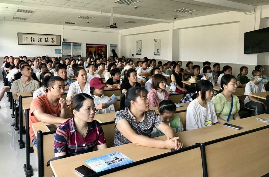 上午8:00,家長和同學(xué)們陸續(xù)走進(jìn)學(xué)校。截至9:00,學(xué)校3個(gè)報(bào)告廳、教學(xué)樓二樓大廳、家長接待室、校南門家長咨詢點(diǎn),共接待家長超1500人次。