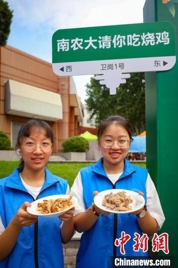 迎新現(xiàn)場(chǎng),南京農(nóng)業(yè)大學(xué)食品科技學(xué)院精心制備“南農(nóng)燒雞”,為新生和家長(zhǎng)了解學(xué)校特色、食品特色提供直觀感受。泱波 攝
