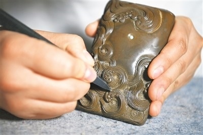 藺霄鱗對(duì)澄泥硯進(jìn)行完善。照片均由新華社記者 楊晨光攝