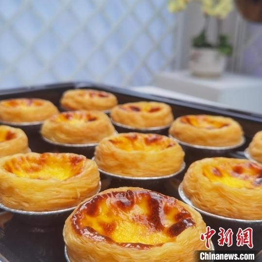 “圓夢號(hào)”餐車上珠海市社會(huì)福利中心成年殘障孤兒制作的蛋撻。廣東省民政廳供圖