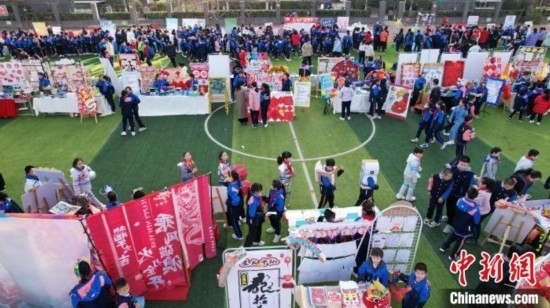3月11日,學(xué)生們逛“廟會(huì)”。中新網(wǎng)記者 翟羽佳 攝