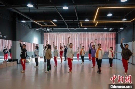 3月19日,兩地學生一起學習古典舞。唐哲 攝