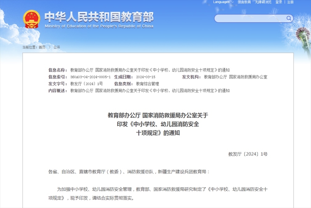 記者近日從教育部獲悉,為加強(qiáng)中小學(xué)校、幼兒園消防安全管理,教育部、國(guó)家消防救援局研究制定了《中小學(xué)校、幼兒園消防安全十項(xiàng)規(guī)定》。規(guī)定明確,中小學(xué)校、幼兒園應(yīng)定期開展教職工、安保人員消防安全培訓(xùn)。
