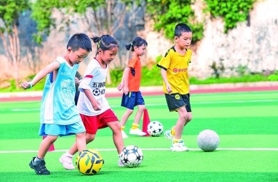 湖南永州一學(xué)校運(yùn)動(dòng)場,孩子們參加足球訓(xùn)練。新華社發(fā)