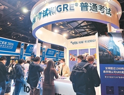 托福和GRE考試展臺(tái)前咨詢情況。