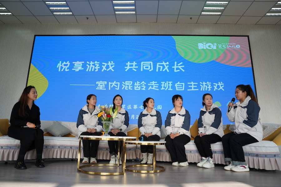 當(dāng)日,由西華師范大學(xué)、呼和浩特市教育教學(xué)研究中心舉辦的“四川省第三期卓越園長(zhǎng)高級(jí)研修暨呼和浩特市幼兒園園長(zhǎng)骨干教師主題培訓(xùn)”成員走進(jìn)賽罕區(qū)第七幼兒園進(jìn)行園所參觀以及教研活動(dòng)觀摩,并對(duì)室內(nèi)混齡走班自主游戲特色課程表現(xiàn)出極大的興趣。