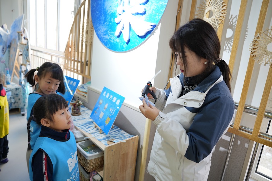 賽罕區(qū)第七幼兒園黨支部書(shū)記兼園長(zhǎng)劉曉菲介紹,混齡走班是打破平行班班級(jí)界限,讓不同年齡段不同班級(jí)的幼兒通過(guò)自愿選擇的方式進(jìn)入?yún)^(qū)域活動(dòng)的一種學(xué)習(xí)方式,活動(dòng)時(shí)寬松自由的活動(dòng)氛圍、靈活多樣的活動(dòng)方式,能讓幼兒與更多的教師、同伴一起游戲、共同學(xué)習(xí)、互相交流。