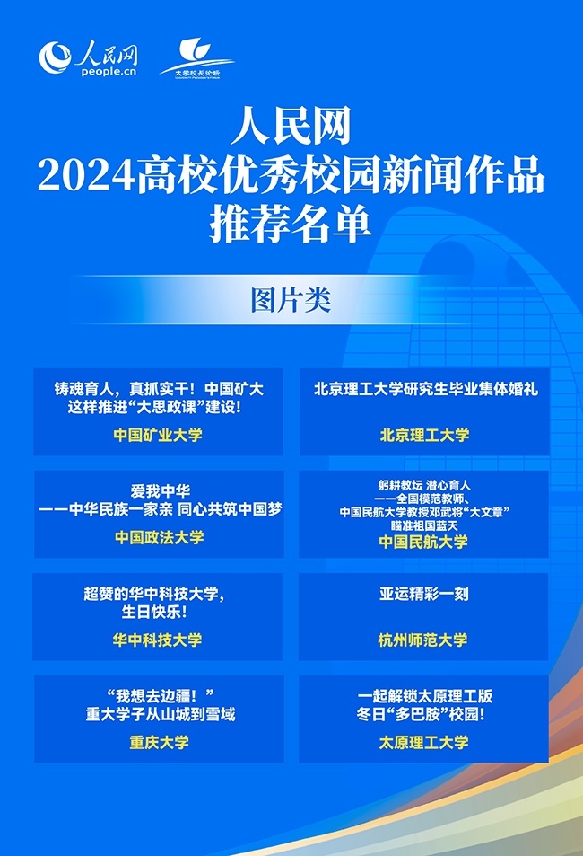 人民網北京12月27日電 (記者孫競、李依環(huán))以“推進教育科技人才一體發(fā)展 加快建設教育強國”為主題的人民網2024大學校長論壇27日在人民網“初心”報告廳舉行。論壇上,人民網2024年高校優(yōu)秀校園新聞作品發(fā)布,50所高校作品入選。