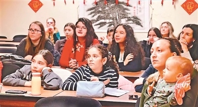 在哥斯達(dá)黎加,“中國文化論壇——春節(jié)傳統(tǒng)漫談”專題講座在哥斯達(dá)黎加大學(xué)舉辦。本土中文教師艾蓮娜從生肖蛇的寓意和春節(jié)的起源講起,詳細(xì)介紹了春節(jié)的禮俗以及相關(guān)的文化知識。