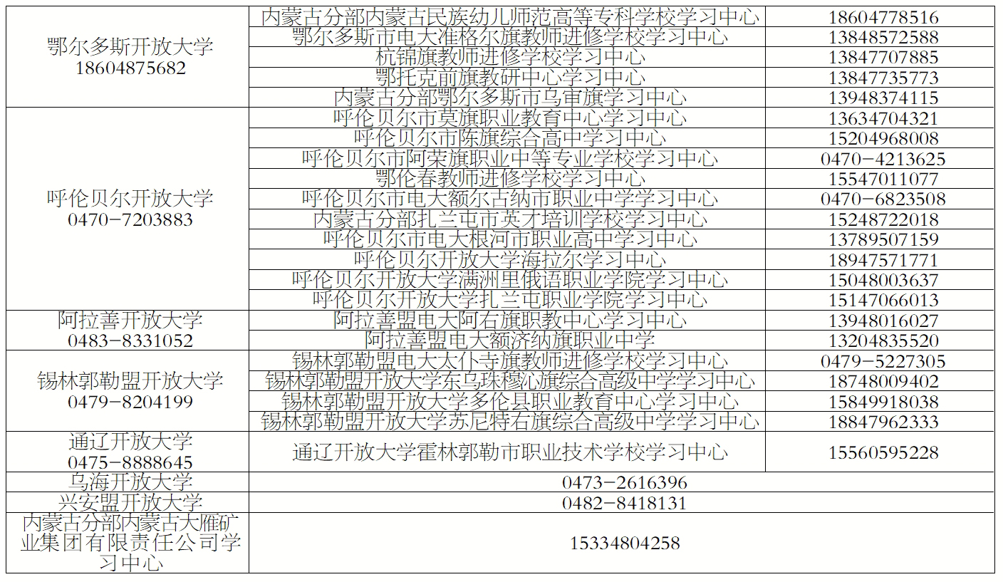 二、內(nèi)蒙古開放大學(xué)提醒社會公眾和廣大學(xué)生,我校嚴(yán)格按照國家開放大學(xué)批復(fù)的學(xué)習(xí)中心開展辦學(xué)行為,從未在內(nèi)蒙古地區(qū)授權(quán)代理機構(gòu)或委托個人以“國家開放大學(xué)”或“內(nèi)蒙古開放大學(xué)”名義代理招生。任何自稱與“內(nèi)蒙古開放大學(xué)”合作招生,宣稱“不用學(xué)習(xí)”、“不用考試”、“免試免考拿證”、“包學(xué)包過”、“報名=畢業(yè)”等虛假宣傳以及亂收費行為,均為違法行為。我校享有“內(nèi)蒙古開放大學(xué)”名稱的專屬使用權(quán),任何單位和個人未經(jīng)我校允許均無權(quán)以我校名義開展對外宣傳。若查實相關(guān)機構(gòu)或個人存在侵權(quán)行為,我校將保留一切訴之法律途徑解決的權(quán)利,由此造成的后果全部由侵權(quán)行為人承擔(dān)。