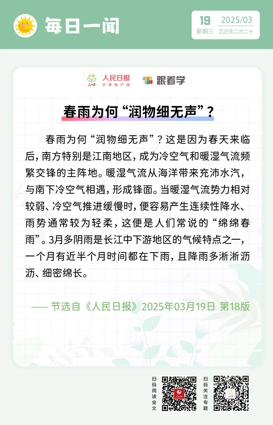 每日一聞丨春雨為何“潤(rùn)物細(xì)無聲”?