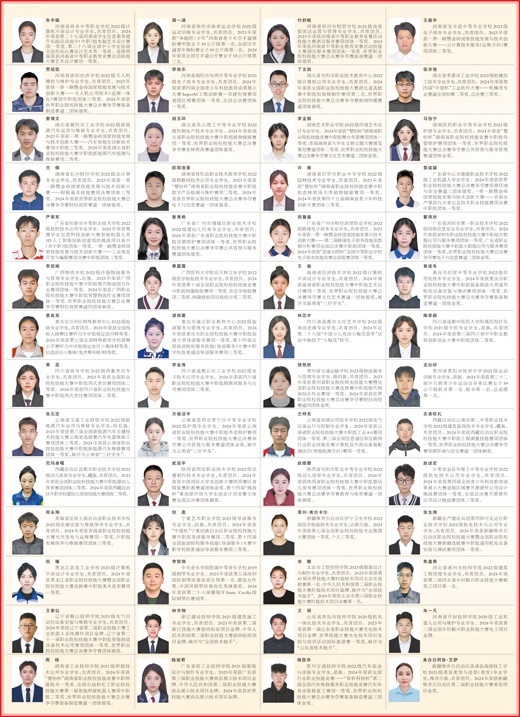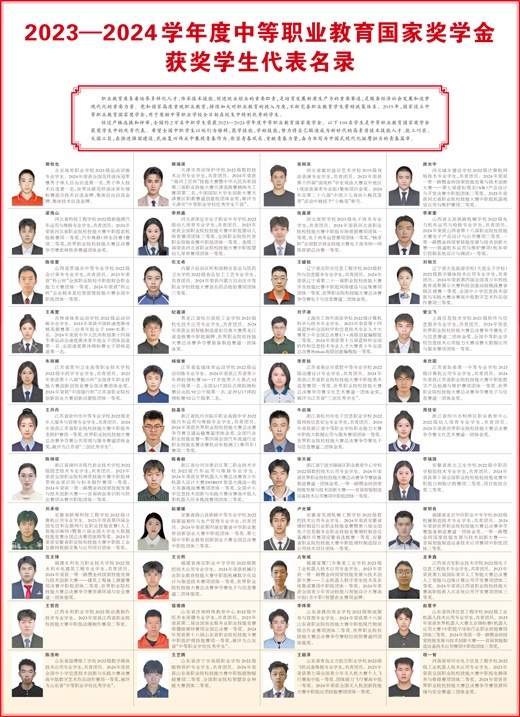 經(jīng)過(guò)嚴(yán)格選拔和評(píng)審,全國(guó)約2萬(wàn)名中職學(xué)生榮獲2023—2024學(xué)年度中等職業(yè)教育國(guó)家獎(jiǎng)學(xué)金。以下100名學(xué)生是中等職業(yè)教育國(guó)家獎(jiǎng)學(xué)金獲獎(jiǎng)學(xué)生中的優(yōu)秀代表。希望全國(guó)中職學(xué)生以他們?yōu)榘駱樱笇W(xué)技能、學(xué)好技能,努力將自己鍛造成為新時(shí)代的高素質(zhì)技術(shù)技能人才、能工巧匠、大國(guó)工匠,在推進(jìn)強(qiáng)國(guó)建設(shè)、民族復(fù)興偉業(yè)中展現(xiàn)青春作為、彰顯青春風(fēng)采、貢獻(xiàn)青春力量,奮力書(shū)寫(xiě)為中國(guó)式現(xiàn)代化挺膺擔(dān)當(dāng)?shù)那啻浩隆?/p>