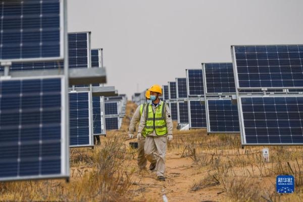 4月20日,工作人員在達(dá)拉特光伏發(fā)電應(yīng)用領(lǐng)跑基地巡檢。新華社記者 王澤聰 攝