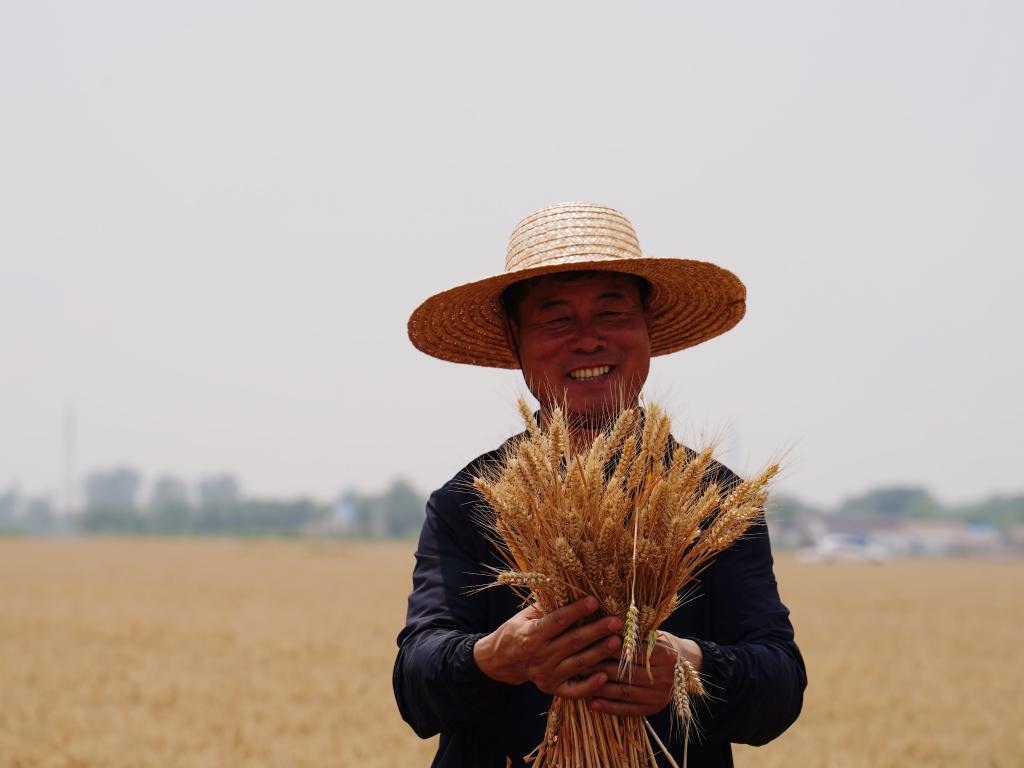 種糧大戶魏德東對小麥豐收充滿喜悅。受訪者供圖。