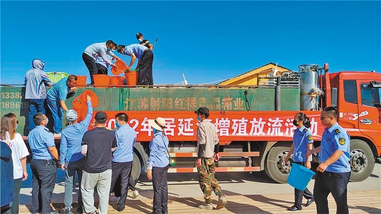 日前,阿拉善盟額濟(jì)納旗舉行2022年居延海漁業(yè)資源增殖放流活動(dòng),現(xiàn)場(chǎng)共放流189萬(wàn)尾魚(yú)苗。